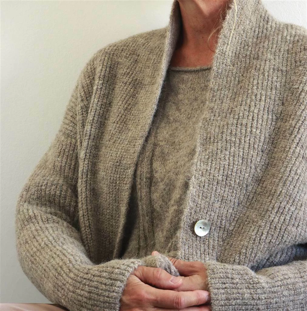 Lindisimo Saco tejido en punto ingles, en un blend de Mohair 45%, Lana merino 20%, Viscosa 20% y Poliamida 15%. En tono melange.
